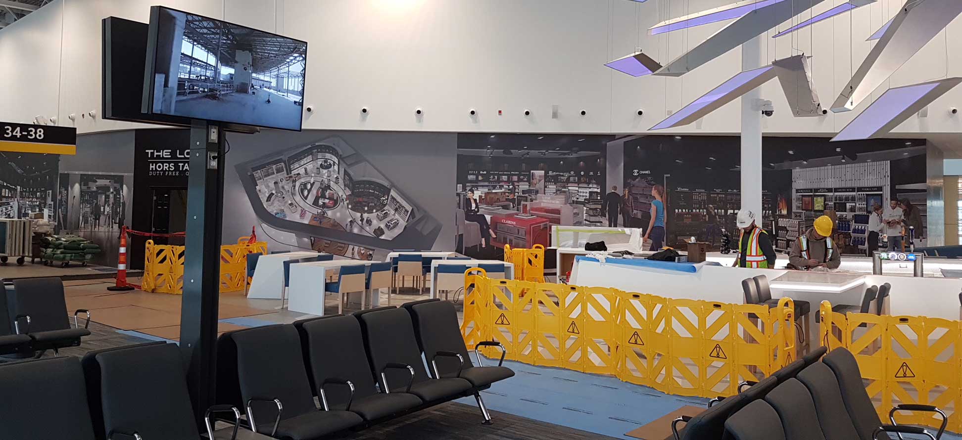 Barricade de construction à l’Aéroport Jean-Lesage de Québec.