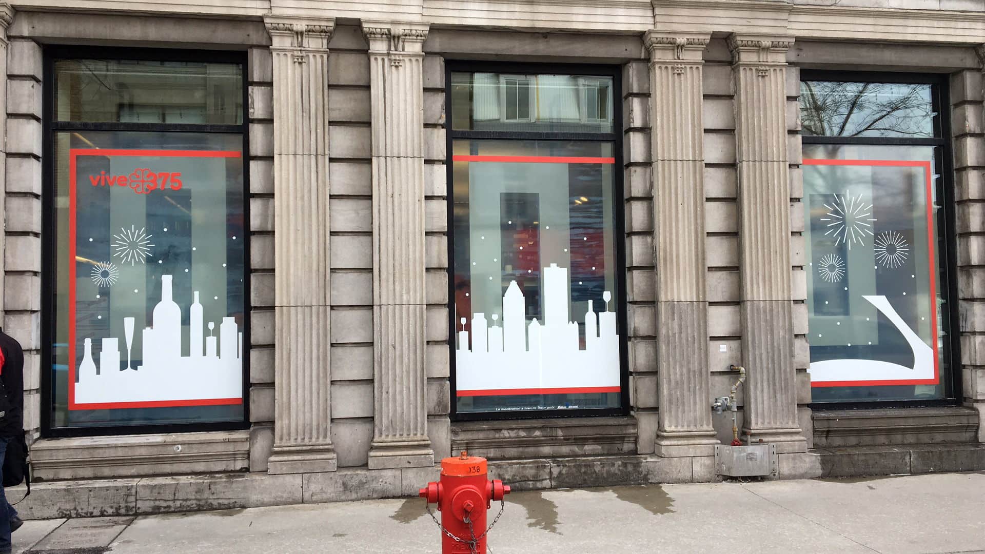 Affichage à la SAQ: Vitrines commémoratives à l’occasion des festivités du 375eme anniversaire de Montréal